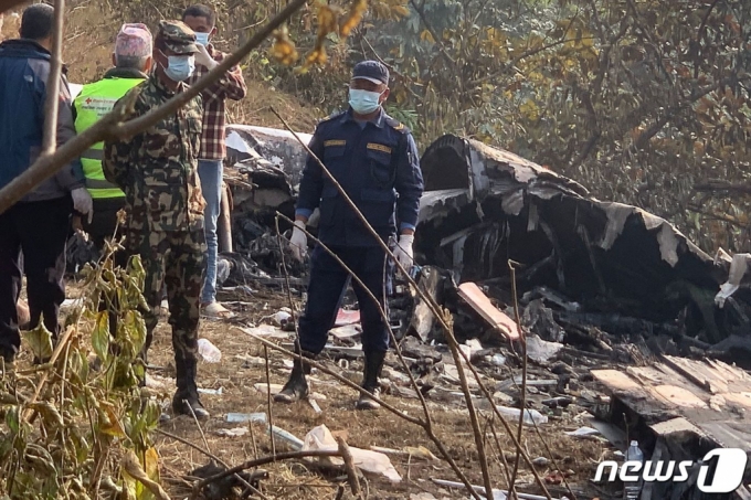 사진 크게보기 15일현지시간 네팔 포카라 항공기 추락 사고 현장에 구조대원들이. 네팔에서 15일 현지시간 추락한 항공기에 한국인 2명이 탑승한 것으로 추정된다고 외교부가 밝혔다. 주 네팔한국대사관 측은 탑승 명단에 한국인 2명이 있으며.